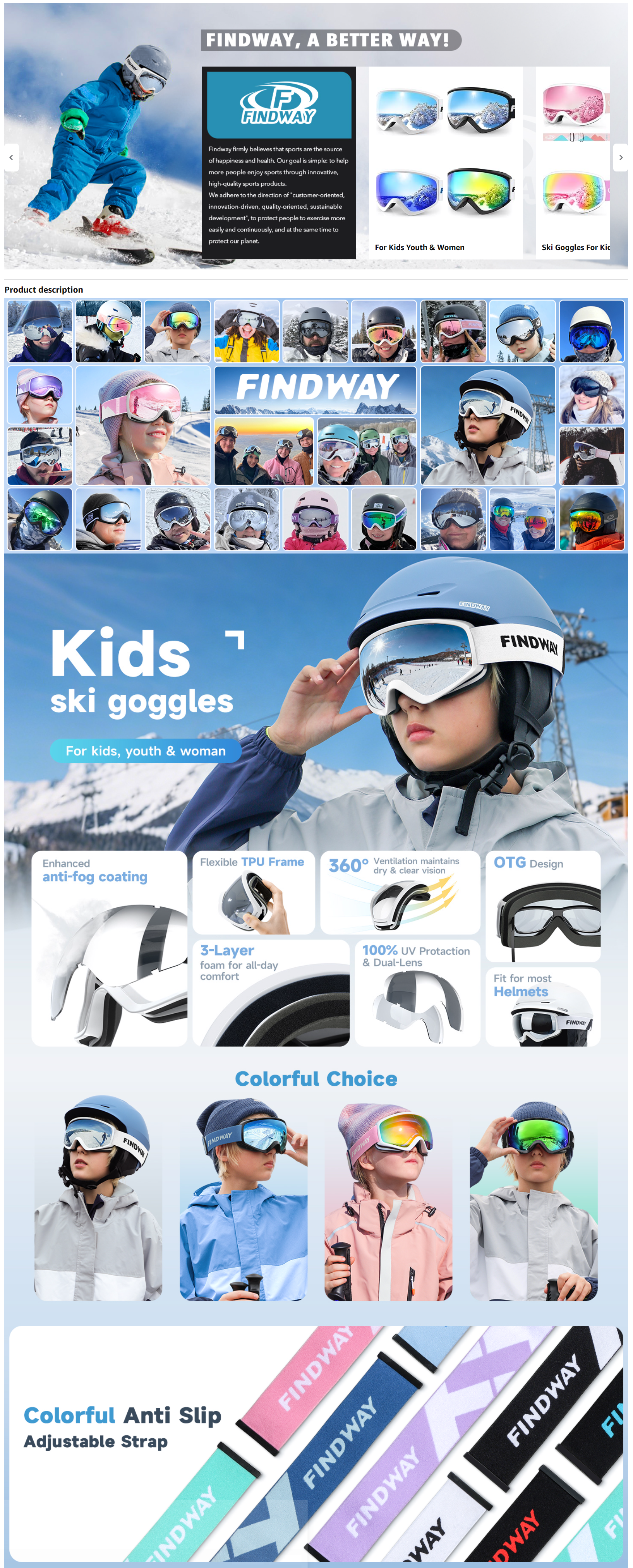 findway Kids Ski Goggles, Kids Snow Snowboard Goggles for Boys Girls Youth